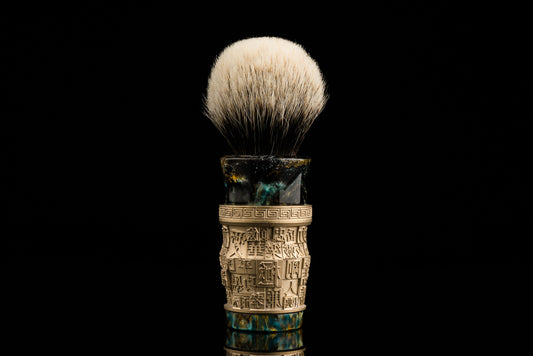 The Four Great Inventions project, launched in September, aims to transform the cultural essence of China's ancient inventions into tangible shaving brush designs. It began with movable-type printing, drawing inspiration from the artistry of Chinese characters. Over 60 culturally significant characters were meticulously modeled and arranged in a dynamic, layered composition to achieve a balance of complexity and order. The design utilizes bronze for its timeless grandeur, complemented by vibrant resin accents to bridge tradition and modernity, while sandblasting ensures an ideal texture and practicality.